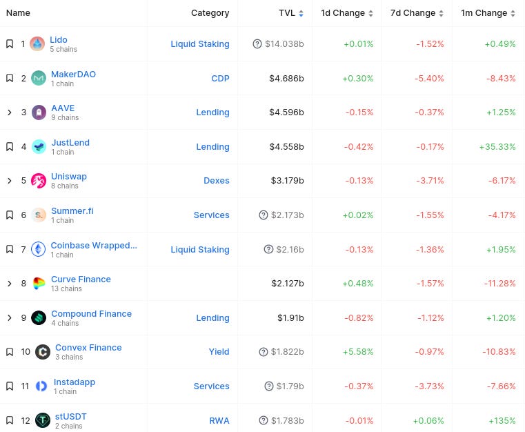 Here’s The Top 12 Protocols By TVL (from @DefiLlama):
