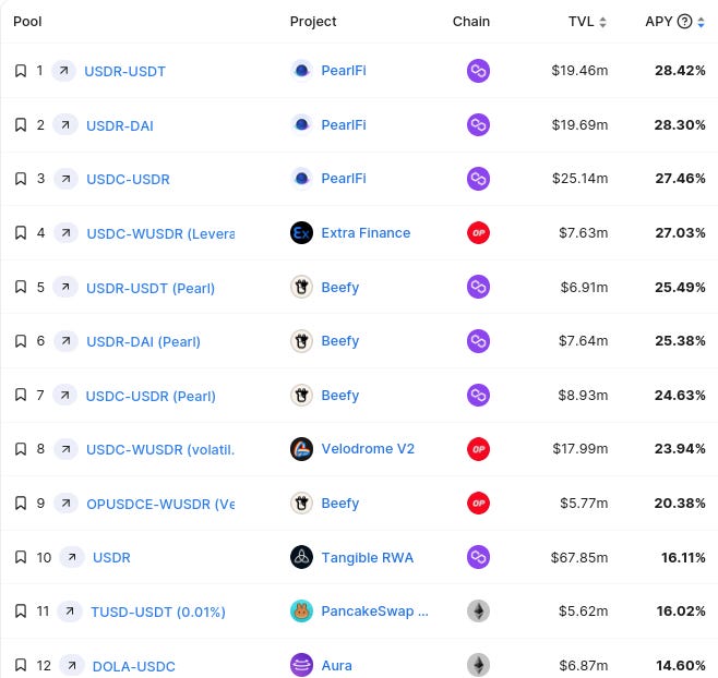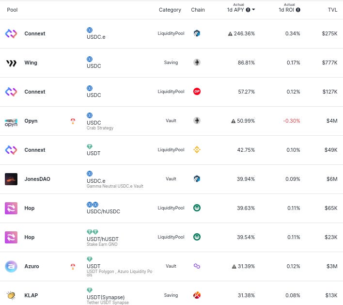(note: these are the top Stablecoin Yields, sourced from @DefiLlama (all types, $5M+ TVL) and @stable_fish - note: these lists are just raw data, make sure to always DYOR before interacting with any/all protocols)