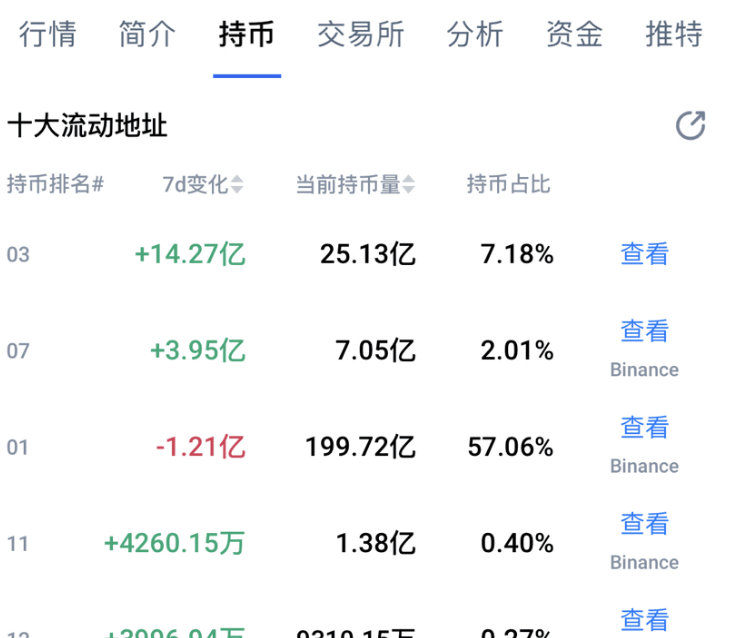 2.查看持币情况,这个很关键,一般快启动的币,价格还没有很明显的抬头,如果持币靠前的大户持币增加,交易所流出,这种就有搞事的可能
