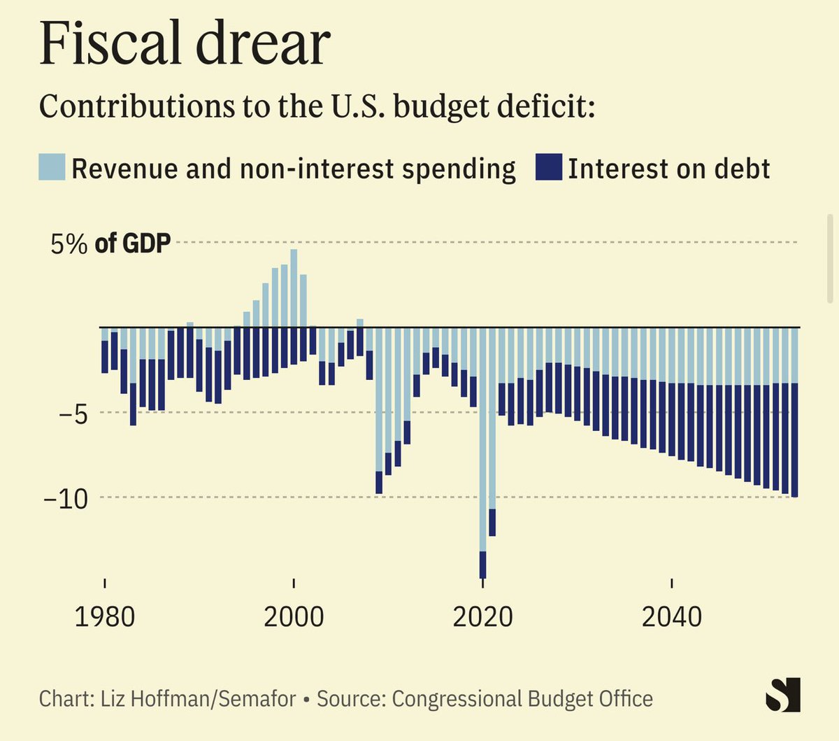 “Already running huge deficits, the only way for Treasury to pay the interest — along with ambitious spending programs like the CHIPS Act and student-loan forgiveness — is to keep borrowing.