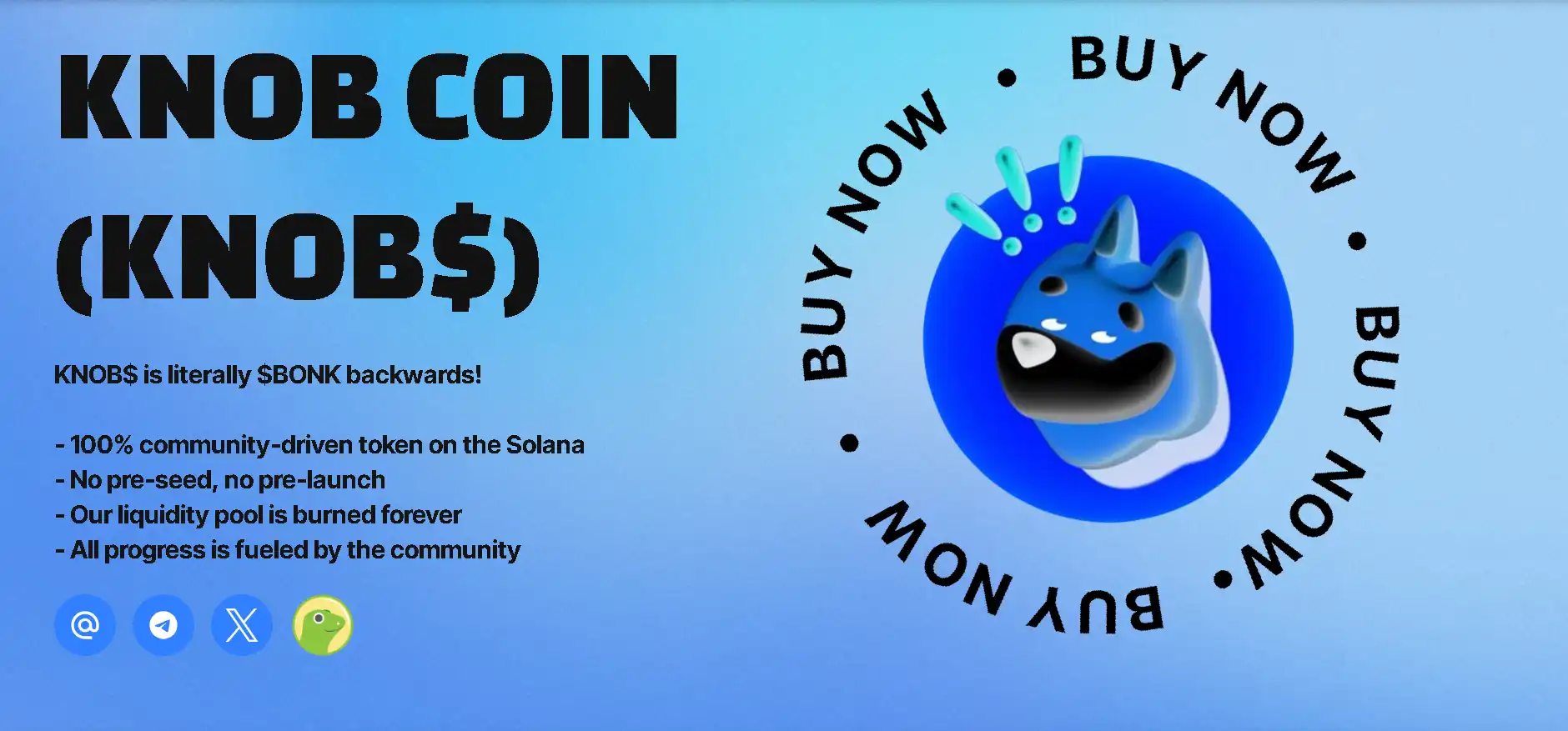 Bonk's narrative comes from the picture of Internet celebrity Shiba Inu Cheems being hit on the head with a blunt object. It can be used to mock oneself as "sad", indicating that one is being beaten, or it can be used in situations where one wants to beat someone. And this meme is called Bonk, and Bonk is the sound of being hit on the head. Although KNOB is the inverse of BONK, it uses a blue Shiba Inu as its own unique meme image representative.