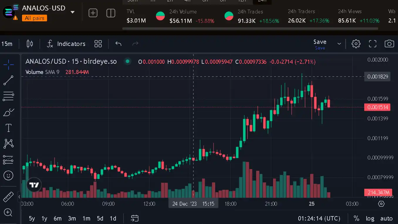 Since the launch of the token on December 20, the market value of ANALOS has exceeded US$150 million from the initial US$40,000, growing more than 3,700 times in just 5 days. According to birdeye data, as of writing, the price of ANALOS is $0.0015.