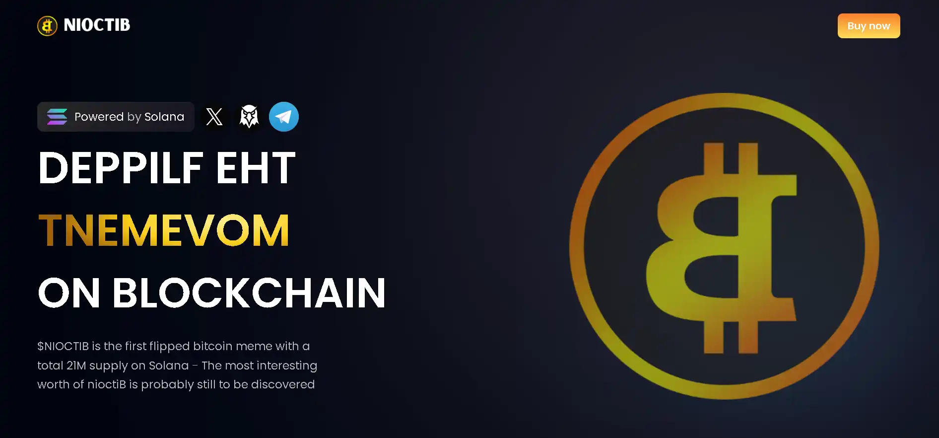 NIOCTIB is the inversion meme coin of BITCOIN. NIOCTIB may not be the first reversal meme on Solana, but it must be the first reversal Bitcoin meme on Solana.