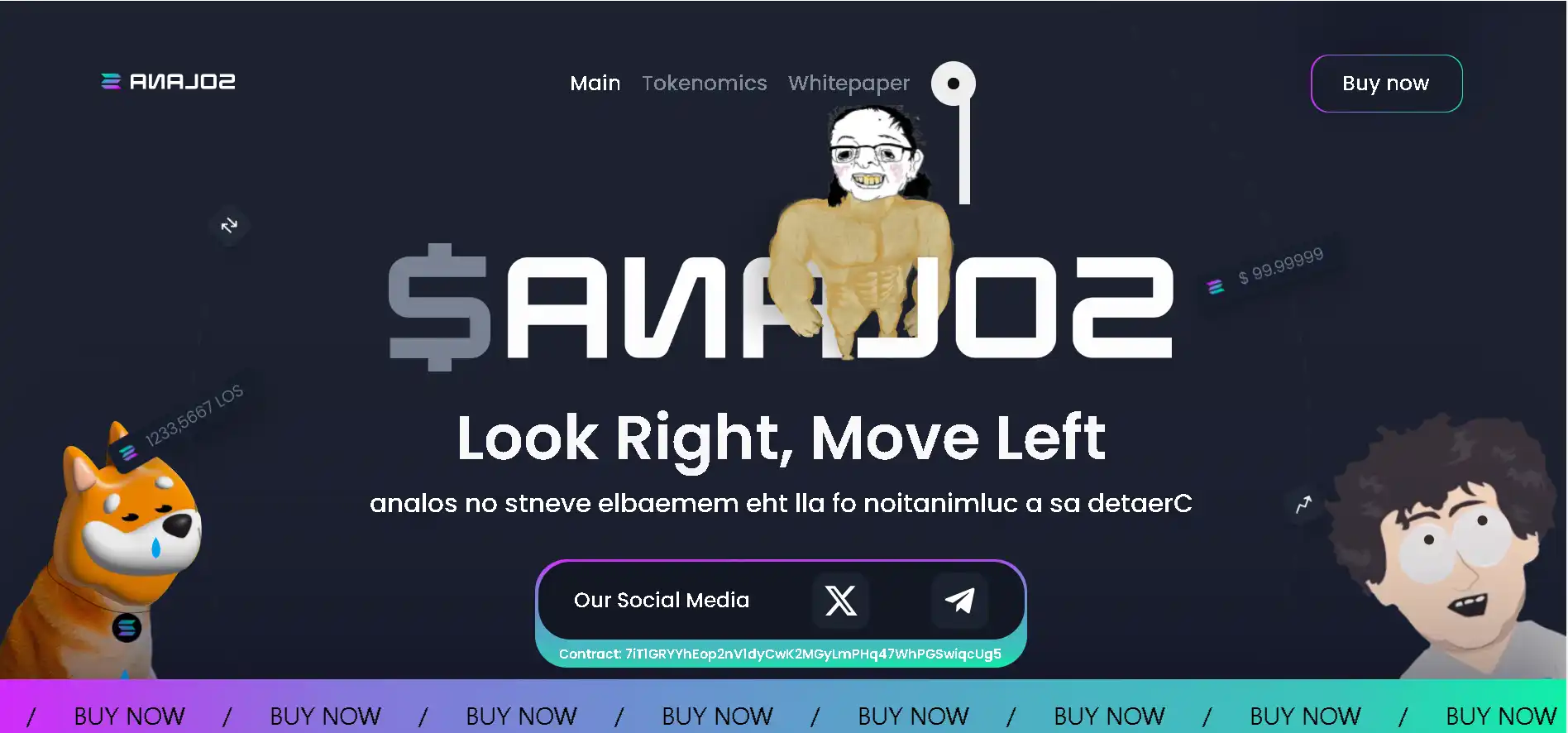 Unlike other meme coins, ANALOS does not seem to have its own representative image. Its twitter avatar is a mirrored version of the Solana logo, and the images displayed on the official website interface are also classic memes from the past. With the constantly scrolling "BUY NOW" subtitles and the heads jumping up and down, after clicking to view the white paper, only the animation of the paper unfolding appears. The entire official website page design can even be said to be biased towards "abstract style".