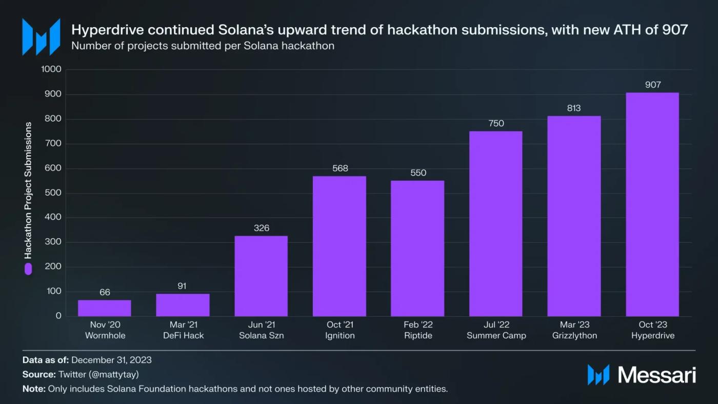 In total, more than 7,000 participants submitted 907 projects, a record number for the Solana Foundation Hackathon.