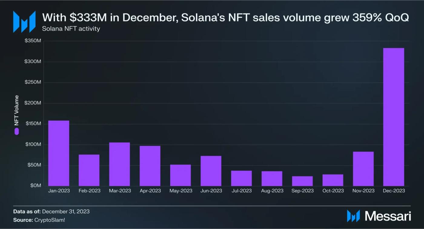- The JTO airdrop and BONK listing on Coinbase further stimulated on-chain activity in December 2023;