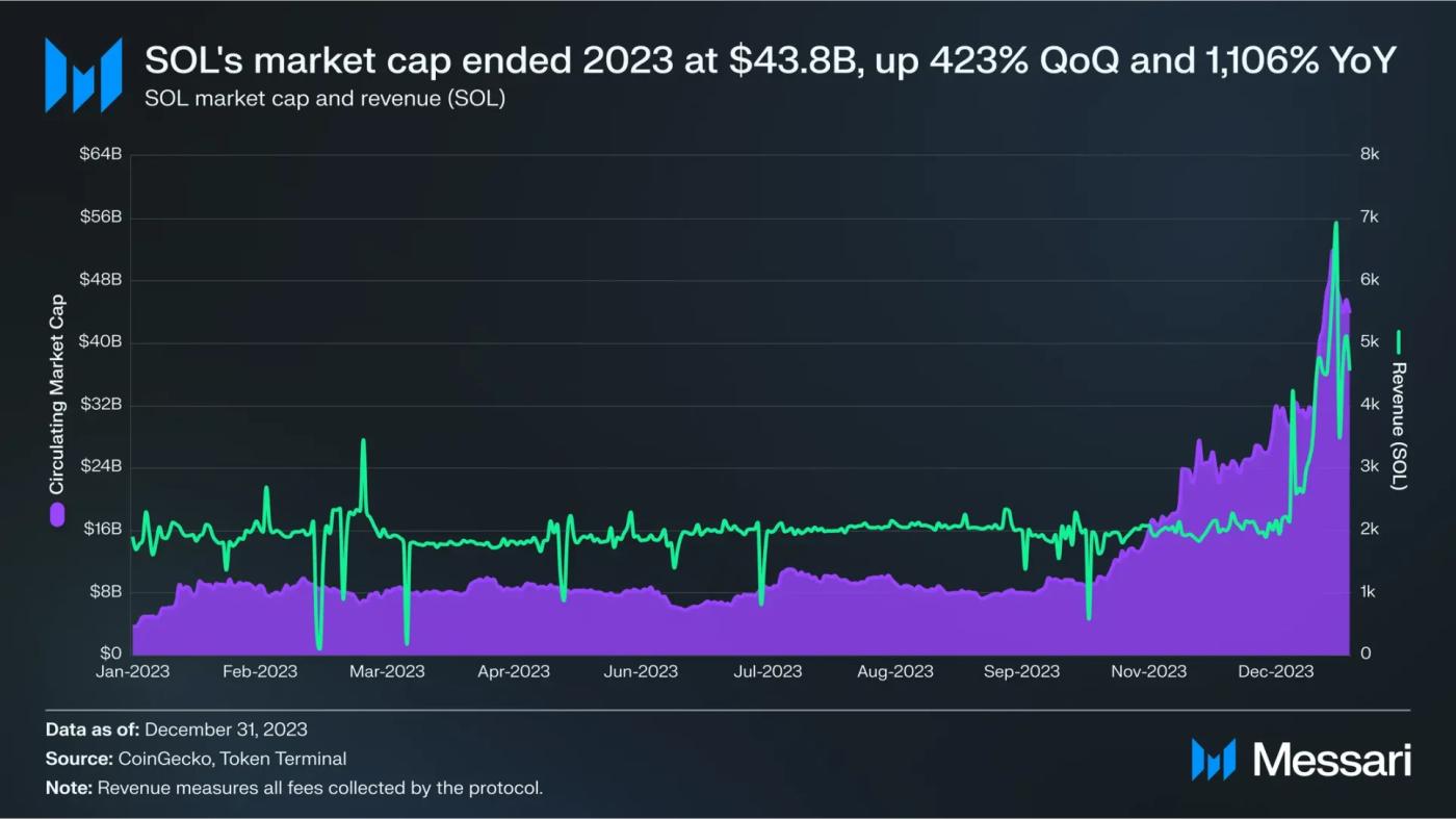 In the fourth quarter of 2023, SOL's market capitalization exceeded ADA, USDC and XRP, ranking fifth among all cryptocurrencies, while its market capitalization ranking at the beginning of 2023 was 17th.