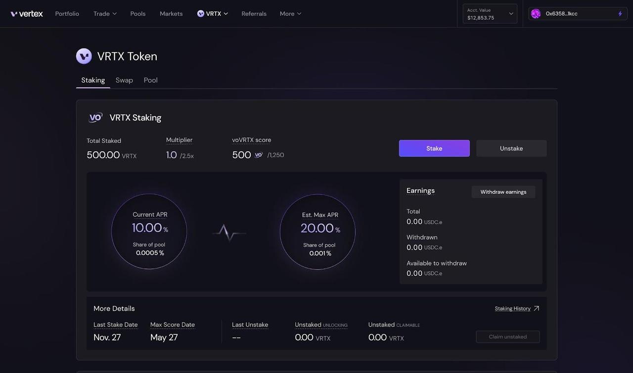 The main purpose of the VRTX token is to promote the activity and collaborative development of the Vertex community. Its main functions include staking and incentives. Among them, users can contribute to the security of the Vertex ecosystem by staking VRTX. Vertex has introduced the "VE" model, which generates voVRTX points based on the length of mortgage time to encourage users to hold and participate for a long time; it also provides rewards for contributors of varying degrees to the protocol to encourage continued participation and support.