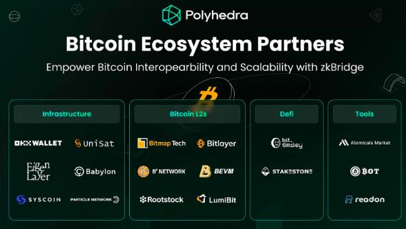 Polyhedra Network has partnered with key builders within the Bitcoin ecosystem, covering infrastructure, wallets, Bitcoin second layers, DeFi and tools.