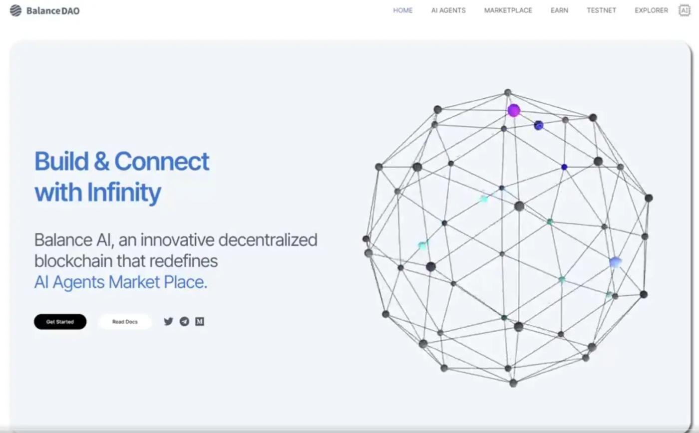 Balance AI operates as an open source protocol for a decentralized machine learning network where models work together and earn $BAI tokens based on their value through a proof-of-stake blockchain mechanism.