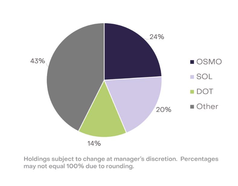 The Grayscale GDIF portfolio currently contains 9 crypto assets: Aptos (APT), Celestia (TIA), Coinbase Staked Ethereum (CBETH), Cosmos (ATOM), Near (NEAR), Osmosis (OSMO), Polkadot (DOT), Sei Network (SEI) and Solana (SOL) . The figure below shows the current asset proportion of GDIF funds. Among them, OSMO accounts for 24%, SOL accounts for 20%, DOT accounts for 14%, and the remaining portion accounts for 43%.