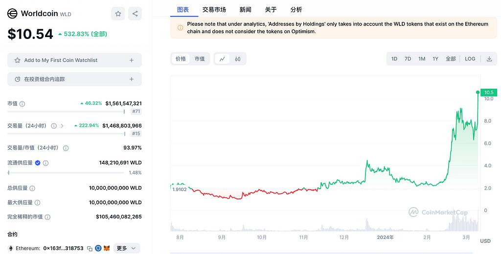 The current market value of WLD is US$1.56 billion, FDV is US$105.4 billion, the total supply is 10 billion tokens, and the current circulation is 1.47%. The main online exchanges are Binance, OKX, and Bybit.