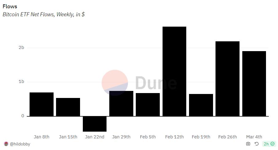 The BTC spot ETFs are still demonstrating strong inflow, with $1.9B last week. As we mentioned in previous weeklies, institutional demand from wealth management platforms has not yet fully materialized. Encouragingly, Blackrock filed an amendment last week to include BTC exposure to include BTC exposure in its Strategic Income Opportunities Fund (BSIIX), a $36B asset allocation fund. This, combined with Fidelity Canada’s move to add BTC to its asset allocation ETFs, signaled the beginning of institutional adoption. Even Arizona Pension has advanced a resolution that would enable state pension funds to allocate to the Bitcoin ETFs.