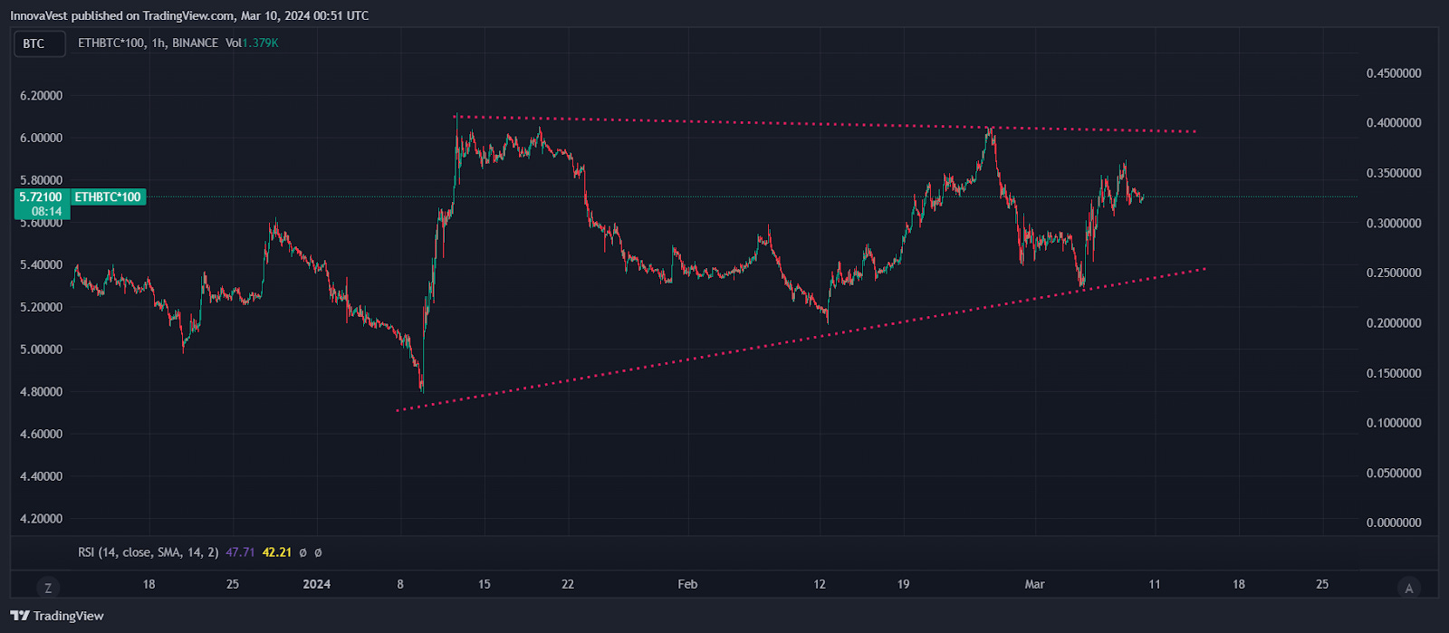 ETHBTC ratio has started forming an ascending wedge pattern this year as two big catalysts in the Ethereum ecosystem are playing out: