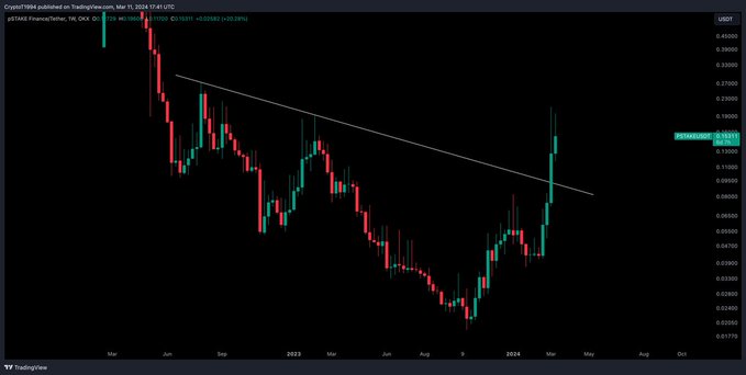 For you hot #Altcoin lovers out there, We have @pStakeFinance Currently established across a few chains including $ATOM, $OSMO, $BNB & $DYDX with the ambition to become the biggest LSP for #Cosmos + #BNB Two solid years of solid building from 2022 - 2023. Chart looking great