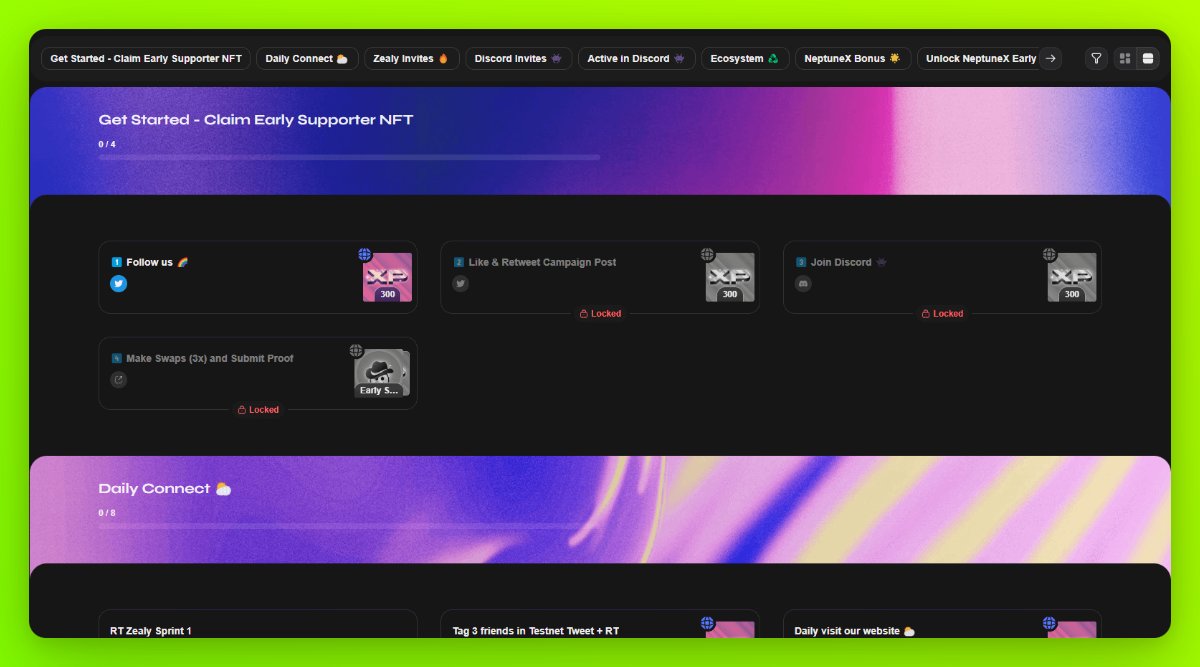 🔹Go to http:/zealy.io/cw/neptunex.