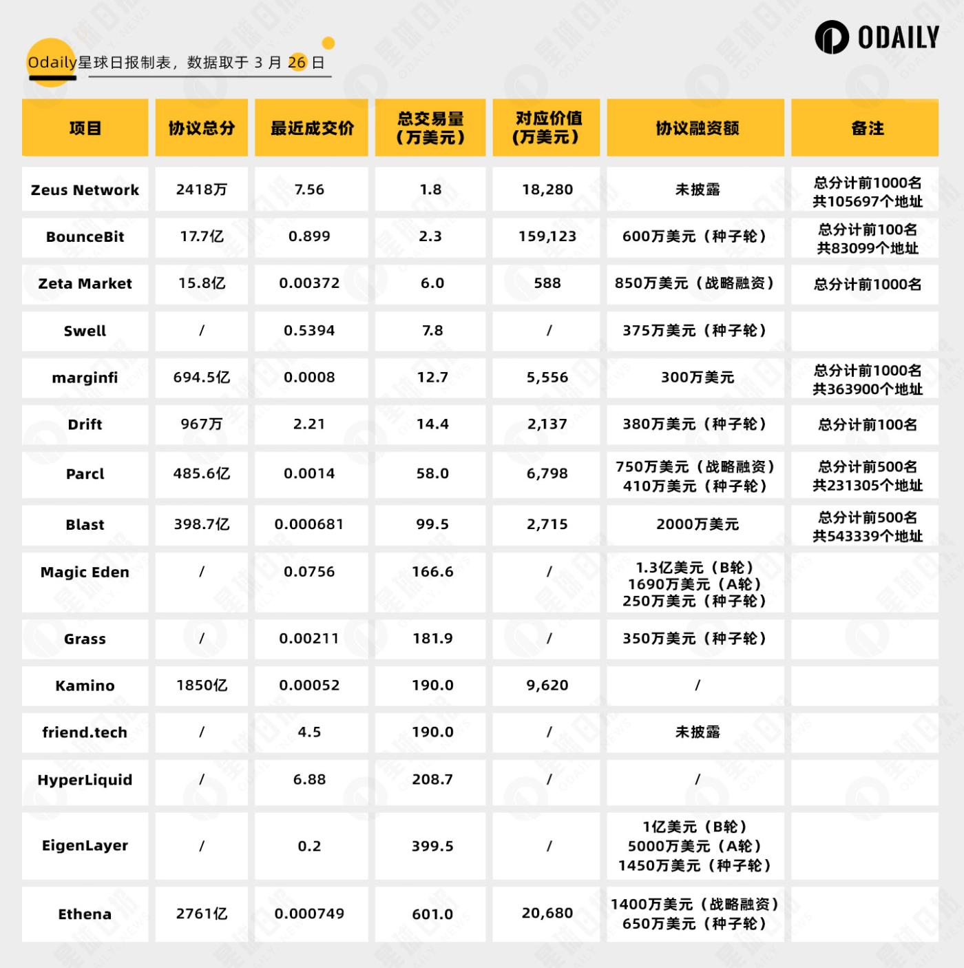According to the table below, if the total points are low and the financing amount is high, it means that the project still has a certain amount of time before airdrops or other token incentives. Users can decide whether to participate based on the project background and the point acquisition speed; if the total points are high and the financing amount is low, There may be a risk of overestimation.
