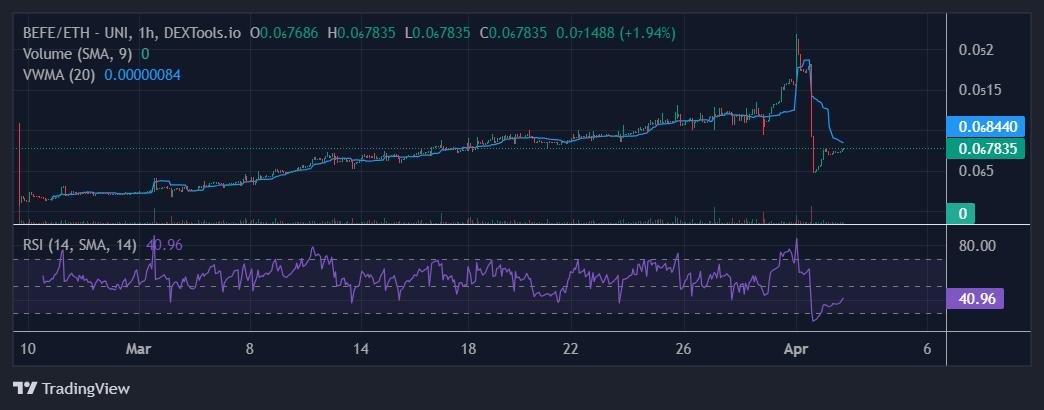 BEFE has experienced a sharp market correction after a continuous uptrend of more than a month. It is currently having a market volume of $409M. Presently, it is at 2% higher than the previous 24 hours.