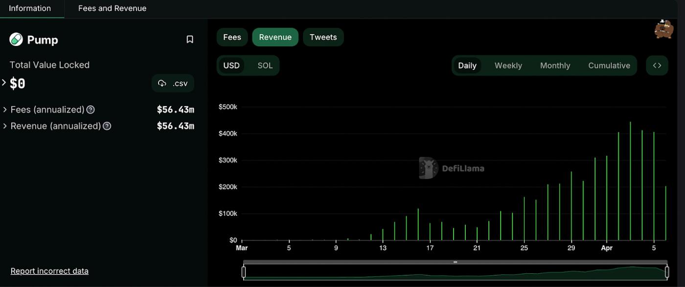 Pump.fun Daily Revenue (Source: DefiLlama)