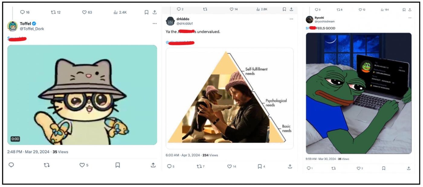 You’ll often find comment sections on Twitter swamped with people promoting memecoins. The behavior stems from a simple fact: the memecoin’s price ultimately depends on how much attention it receives. The more attention a memecoin receives, the more potential buyers. If the associated meme is fun or interesting, those potential buyers are more likely to make a purchase.