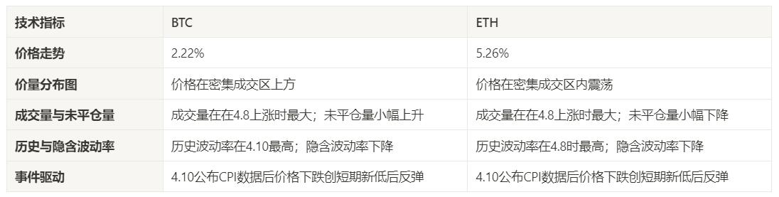 The table shows the weekly intensive trading range of BTC and ETH in the past week.