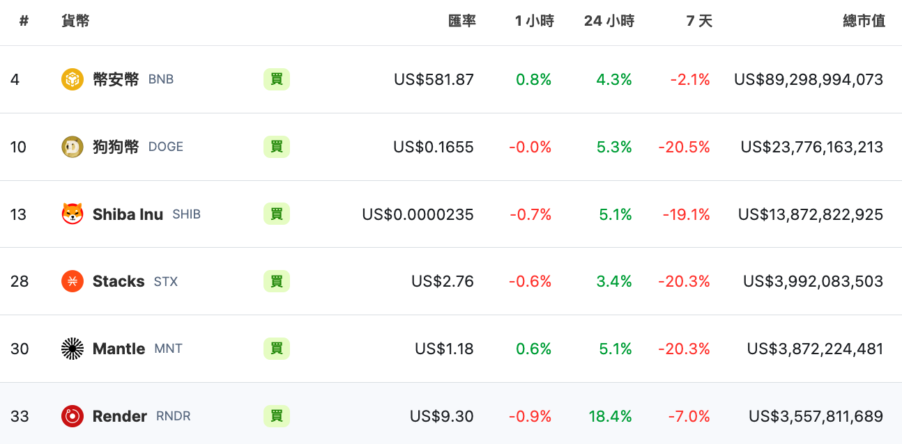 - RNDR: Currently the AI project with the most computing power in the crypto. Up 104% year to date, now trading at $9.3