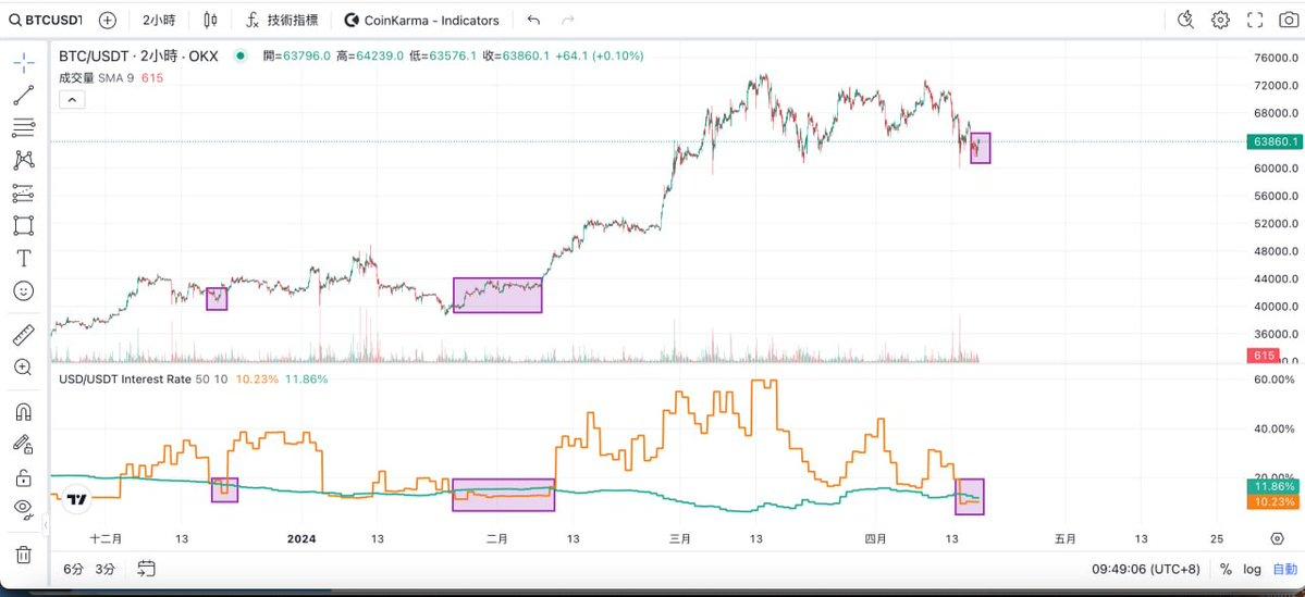 According to the analysis of Followin KOL Benson Sun, he has a way to judge the market bottom, that is, the trend of Bitfinex USD lending rate and Binance USDT lending rate. According to him, the Bitfinex USD lending rate curve crosses the Binance USDT lending rate curve, which represents the bottom of the market, for the following reasons: