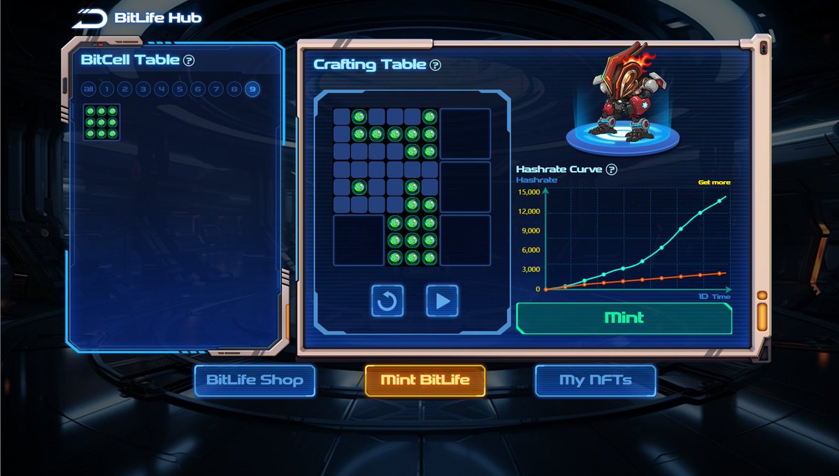 Specifically, players need to use a digital cell called "Bitcell" to create a digital life called "Bitlife". Because there are hundreds of "Bitcell" and the combination method can be freely selected, each "Bitlife" is unique, and it also has various computing power curves, such as strong in the early stage and weak in the late stage, or vice versa, or moderate, etc. After that, by charging your "Bitlife", it will refer to the mining mechanism of Bitcoin, automatically mine on the chain to obtain energy points, and finally obtain token distribution according to your energy points.