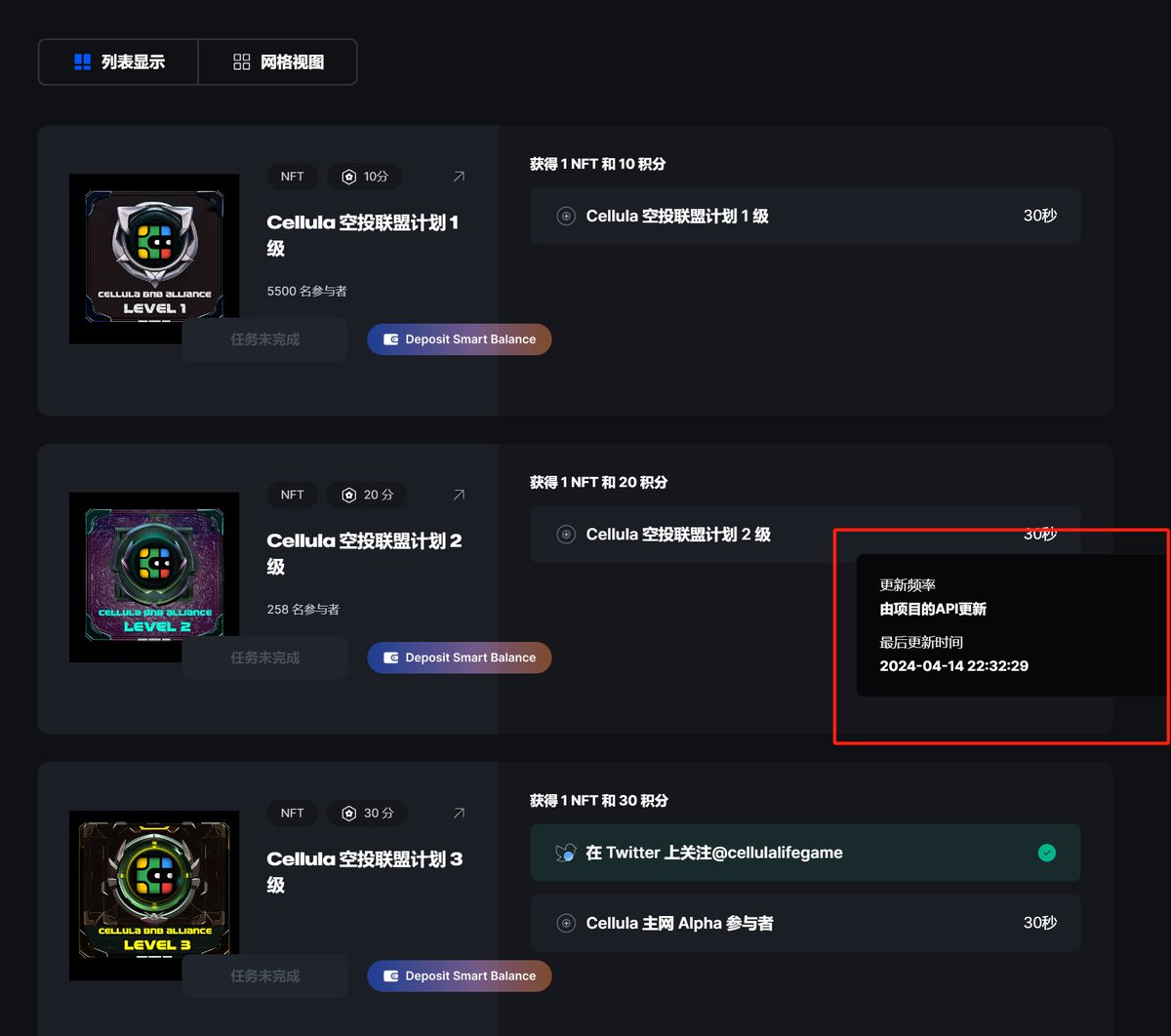 3. Airdrop Plan The game was officially launched on the mainnet on April 15. Participants in the game can directly mine and obtain the project token $CELL airdrop. The airdrop activity will last for two weeks and end on April 28. During the activity, there is a chance to obtain 2 times or even 3 times the mining energy points.