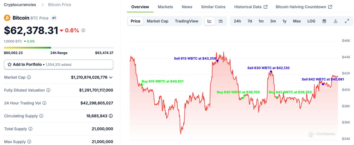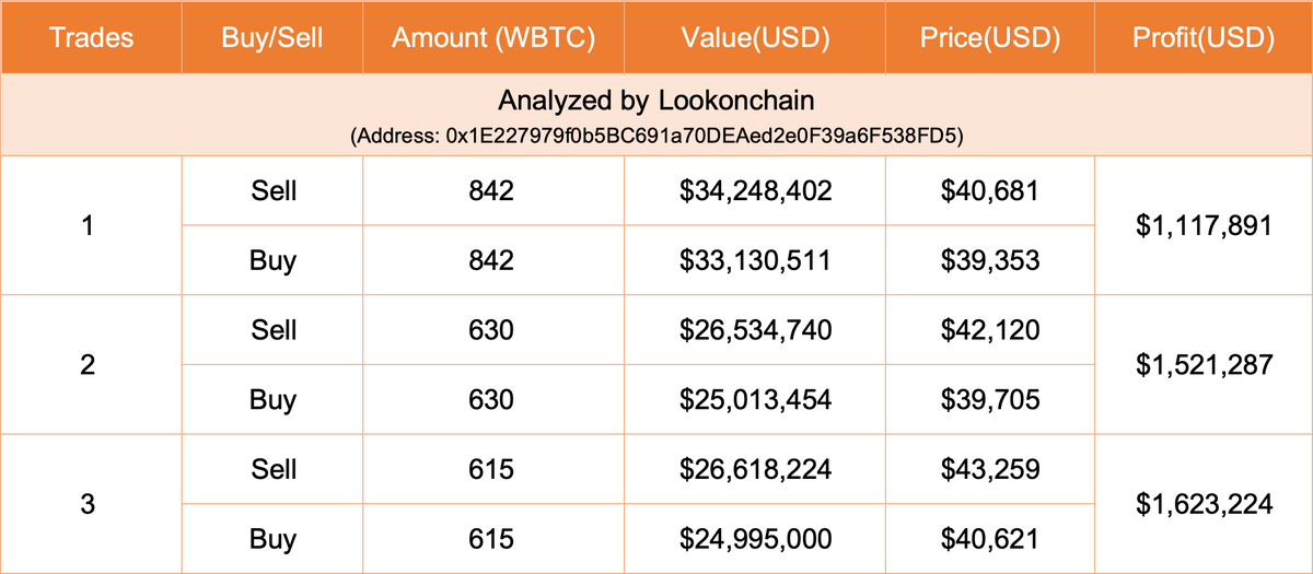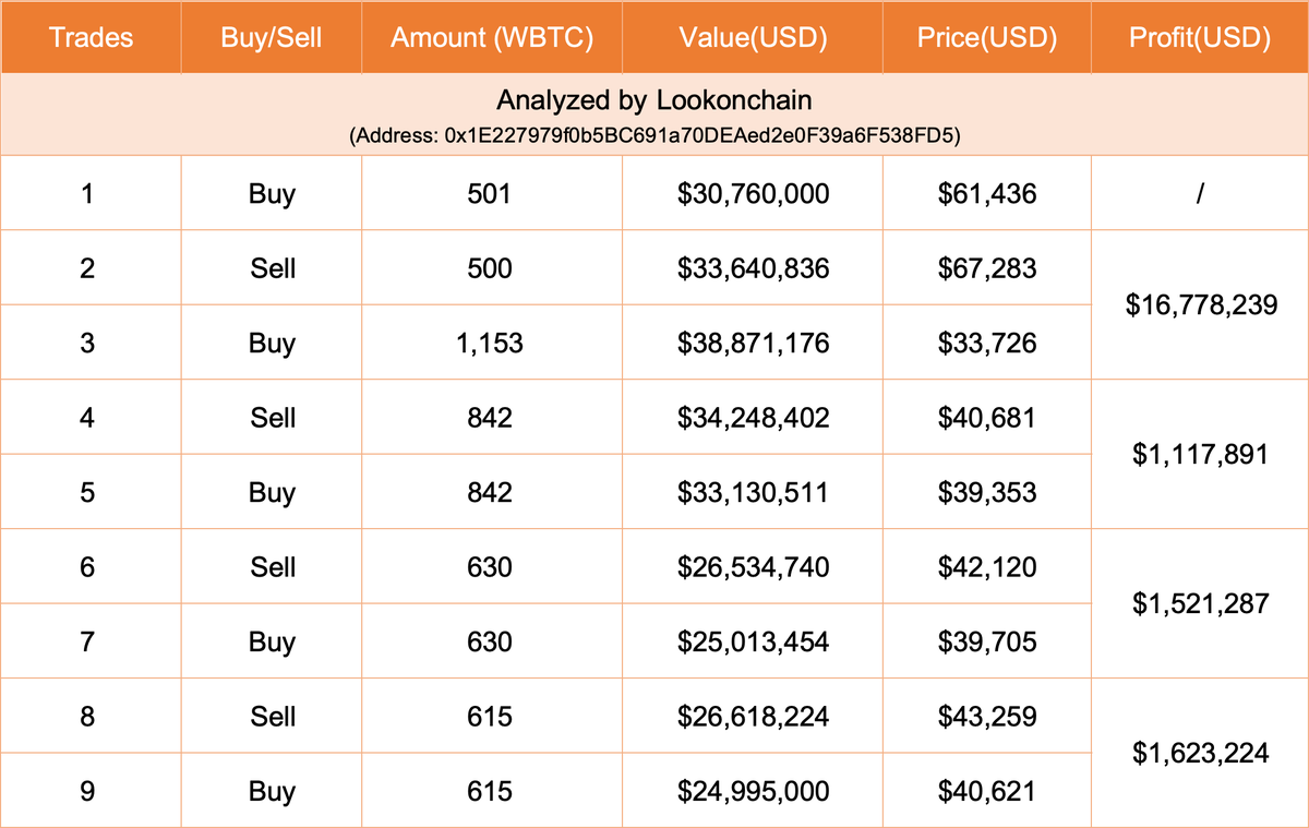 This trader is very smart, buying $WBTC at low prices and selling at highs every time.