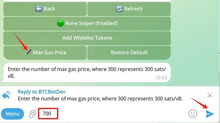 Click "Maximum gas price", enter 700 (or the number you want), and click Send.