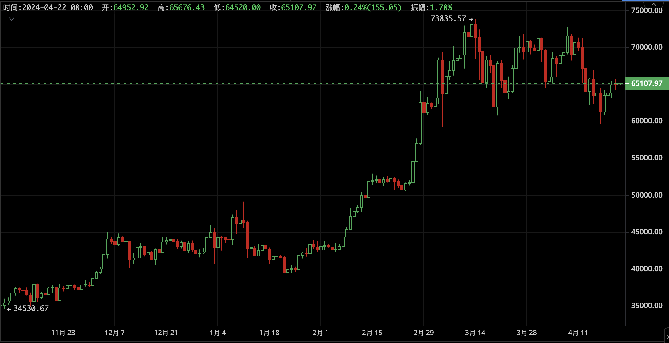 Back to last week, Bitcoin continued to adjust, falling below $60,000 to $59,600, and reaching a high of $66,867. It is currently fluctuating around $64,000, with an overall fluctuation of 11%. This is basically a microcosm of the past four weeks: repeated fluctuations between $60,000 and $70,000. This shows that after Bitcoin quickly created a new historical high, the adjustment momentum has not yet been fully digested.