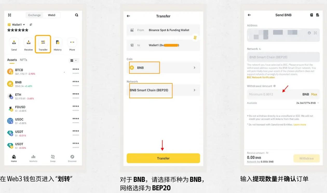 How to transfer from Binance to web3 wallet, see the picture below