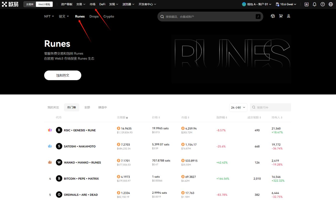 Therefore, Odaily Odaily starts with the creation of the mainstream Web3 wallet, and guides everyone to participate in the casting, secondary transactions of rune-related projects, and analyze the popularity of on-chain rune projects.