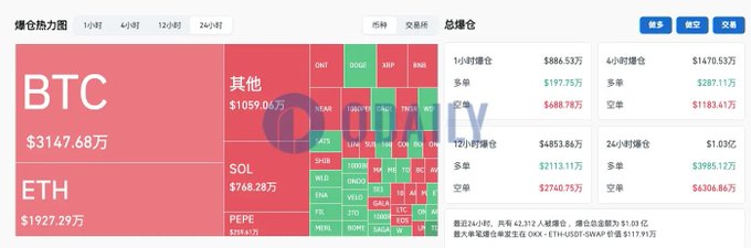 🌋In the past 24 hours, the entire network has been liquidated for $103 million, and the total market value of cryptocurrencies has risen to $2.574 trillion According to CoinGecko @coingecko data, the total market value of cryptocurrencies is $2.574 trillion, with a 24-hour increase of 2.6%. In addition, $BTC has a market share of 51.2%, and $ETH has a market share of 14.9%. According to Coinglass @coinglass_com data, in the past 24 hours, the entire network has been liquidated for $1.03