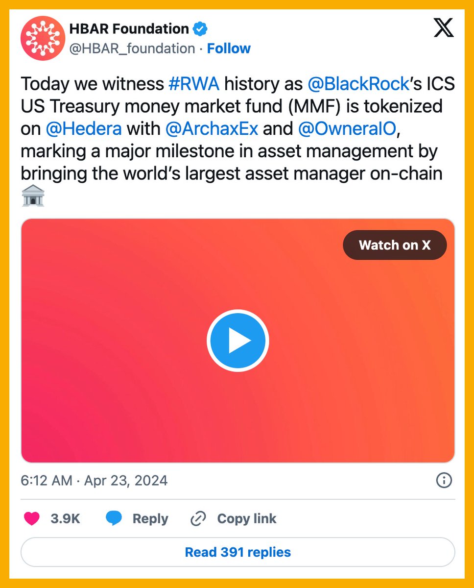 🔥 Archax, a London-based digital asset exchange and custodian, has Token BlackRock ICS's money market fund on the Hedera (HBAR) blockchain.
