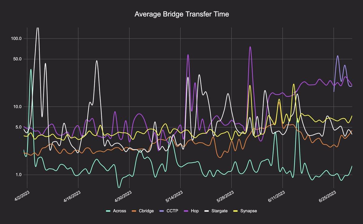The third-party relay will monitor the user's cross-chain transactions. Once it sees the transaction, it will use LP to lend money to the user on the target chain. The relay will transfer the user on the target chain when it sees the transaction instead of waiting until the original chain reaches finality to transfer the user, so as to achieve the effect of quickly transferring the user across chains. In comparison with cross-chain bridges such as Stargate, Cbridge, CCTP, and Hop, it can be seen that Across has the shortest cross-chain time.