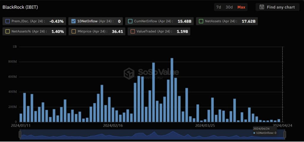 However, while inflows into BlackRock’s spot Bitcoin ETF are falling, there is a growing interest in Hong Kong’s spot BTC and Ethereum ETFs. According to Hong Kong’s financial regulators, the ETFs will begin trading on Apr. 30, 2024. The launch of Hong Kong’s BTC and ETH ETFs could provide some cushion to the falling inflows in BlackRock’s spot BTC ETF.