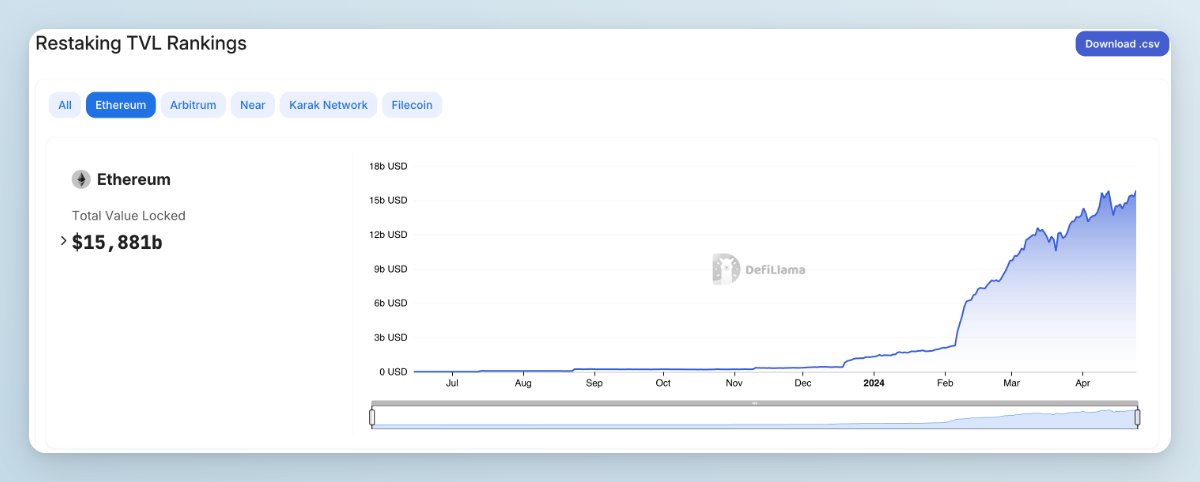 2/ One of the main DeFi narratives for this year was LST and LRT, with 99% of all restaking TVL on the Ethereum network.