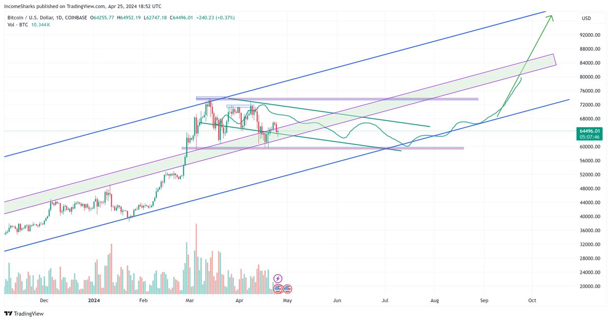 #Bitcoin - Still wouldn't rule out two more months of chop in the channel. Even a fake-out breakdown below $60k still on the table. We need people thinking the halving was a bust.