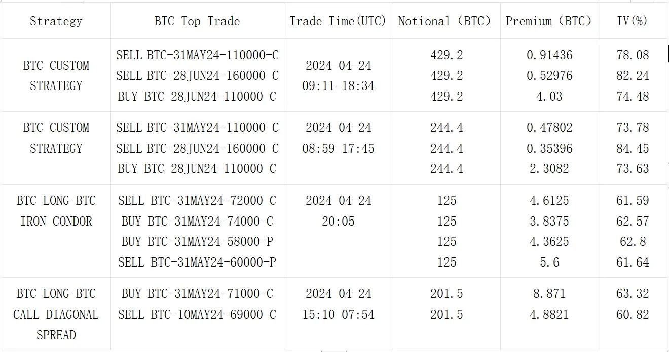 Data Source: Deribit, BTC trading overall distribution and 26 APR 24 turnover