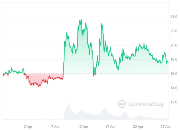 Neo's price has shown remarkable stability, maintaining a strong position around $17 and showing good signs of reaching $41 soon. In the event of a market slowdown, it may find support around $15.2. Neo has performed well in the past month, with an increase of 11.71% and a year-on-year increase of 63.63%.
