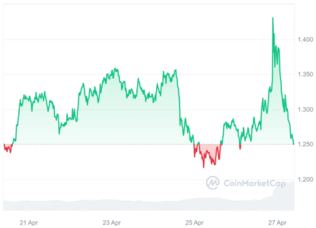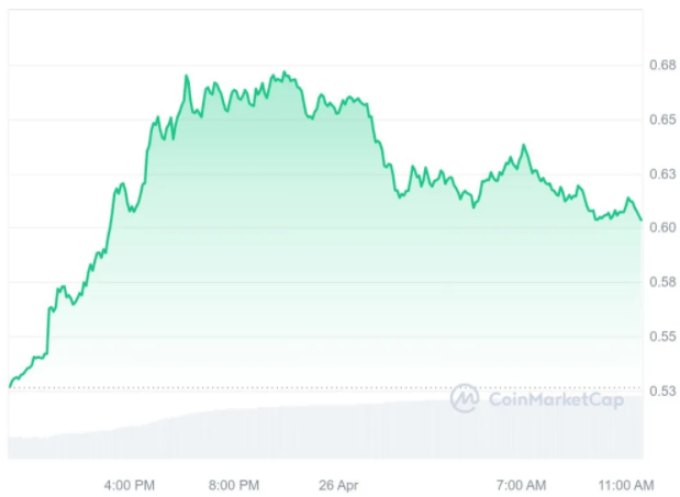 As of writing, Wormhole’s price has increased by 15.28% in the last day to $0.6083. Despite having a market share of only 0.05%, it has high liquidity with a volume-to-market cap ratio of 0.6896. Its market cap is $1.14B and its 24-hour trading volume is $784.33M, which shows its importance.