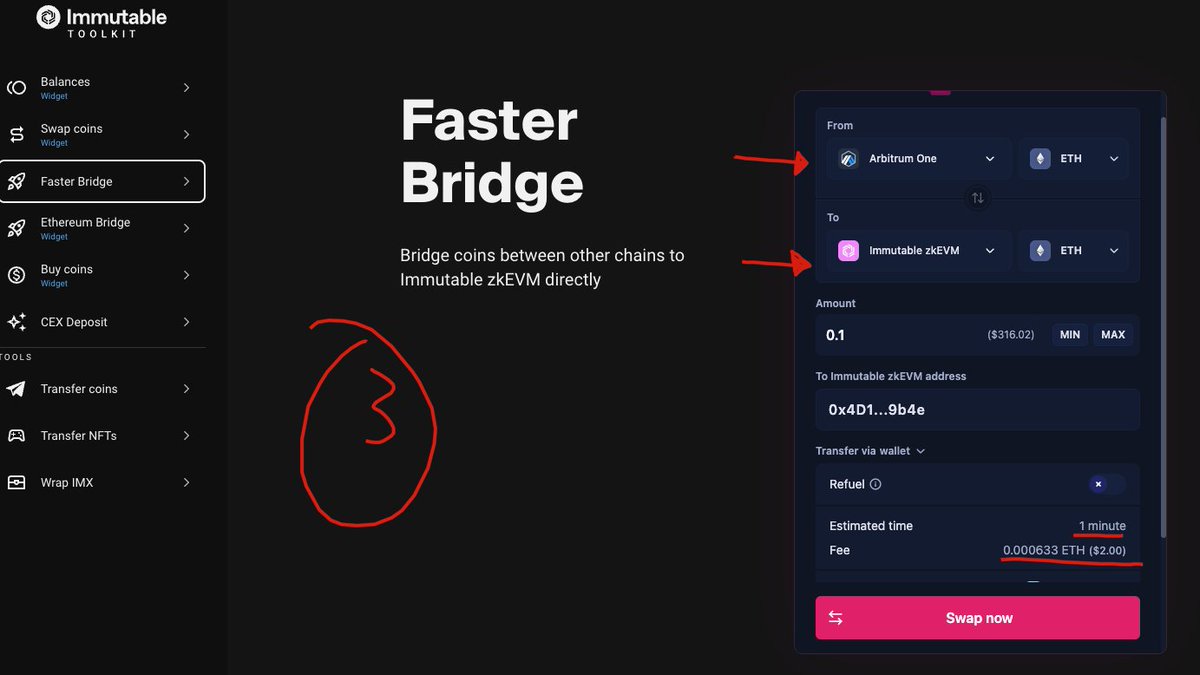 3) enter the amount u want to bridge ( they will rebate u with $IMX for gas)