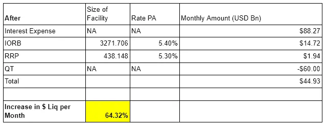 “High” interest rates require the Fed and the U.S. Treasury to pay interest to the wealthy, which, combined with the slowdown in QT, is even more stimulative.