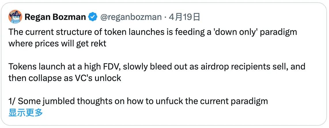 I think one of the structural issues facing most Altcoin in this cycle is that VC selling pressure is not offset by retail inflows . If $500M is raised pre-launch, then there will be $500M of selling pressure (potentially even more if the token price rises).