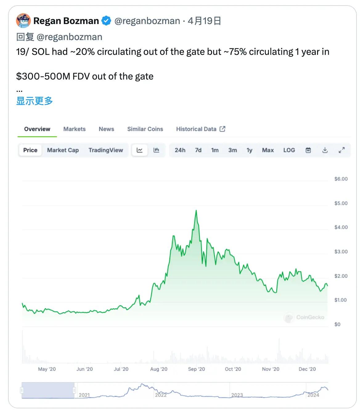 We have gone from an uncapped upside market to a capped market - that’s a huge change. $1,000 invested in SOL’s ICO has now turned into $636,000;