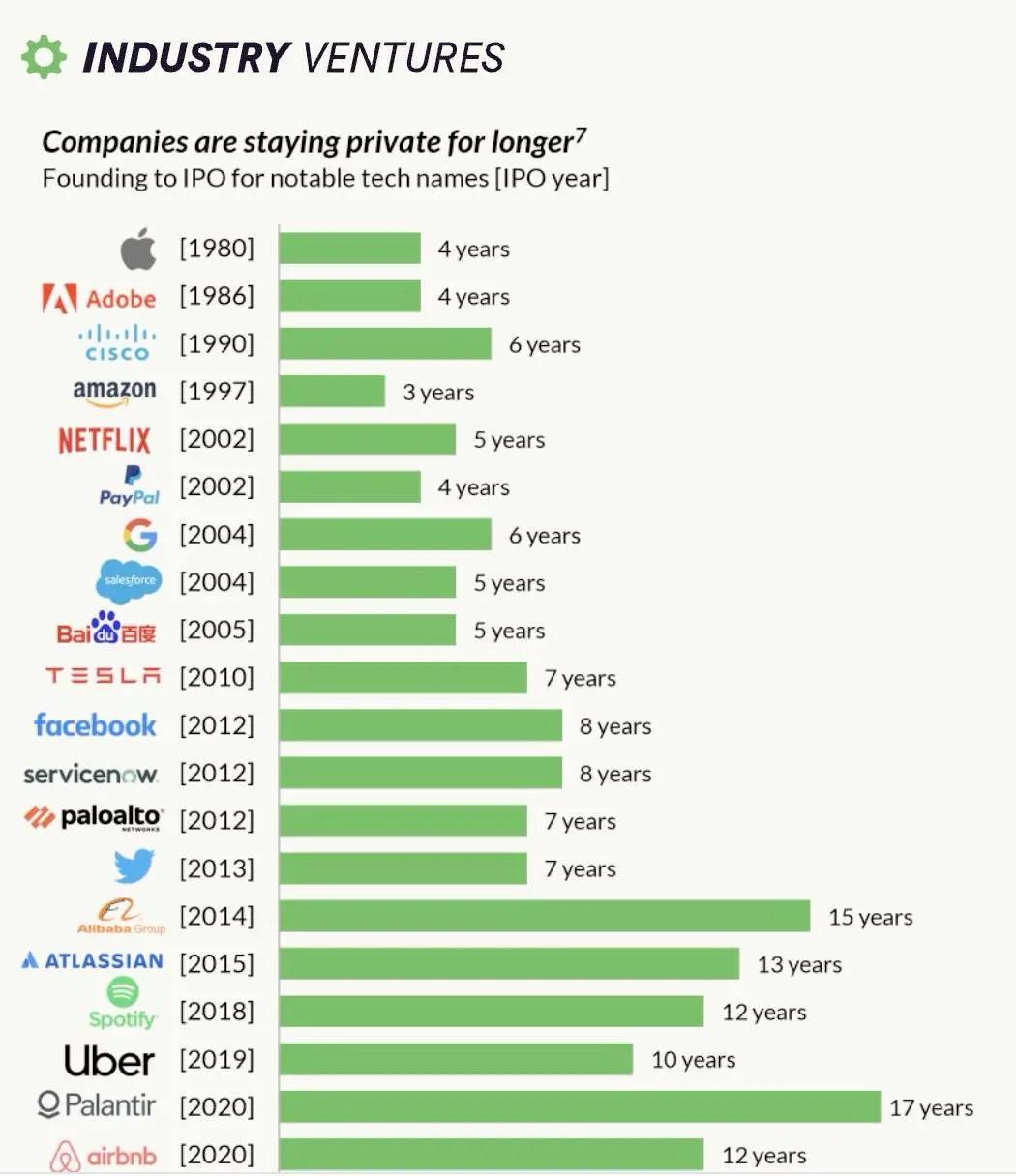 A big reason companies are willing to stay private longer is that venture investors now have five times more money than they did a decade ago. Companies can now raise more than $1 billion in private markets without having to deal with the additional overhead of the public markets.