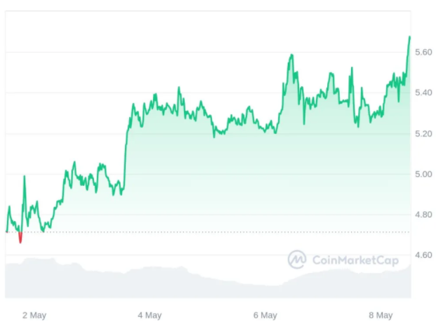 Over the past year, RUNE has surged an impressive 594% in value, making it one of the best performers in the cryptocurrency market. THORChain is currently priced at $5.65, up 2.30% today. While market sentiment is neutral, trading in the token has increased, with a Fear/Greed score of 64.