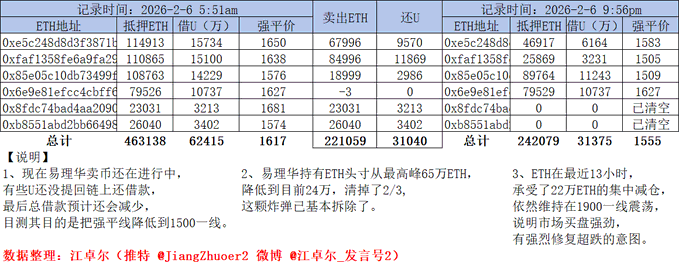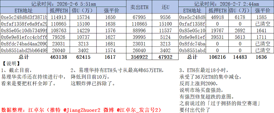 1. As of now, Yi Lihua's cryptocurrency sales are still ongoing. It seems we need to remove all the leverage. 2. Yi Lihua's ETH holdings peaked at 650,000 ETH. Reduced to the current 100,000 The bomb has been defused. 3. In the last 18 hours, ETH... Having withstood a concentrated sell-off of 360,000 ETH, Instead, it rose to 2090. This indicates strong buying interest in the market. There is a strong intention to correct the oversold condition. The "overcrowded short track" I mentioned before. x.com/Jiangzhuoer2/status/2019...… There will be a price to pay :)